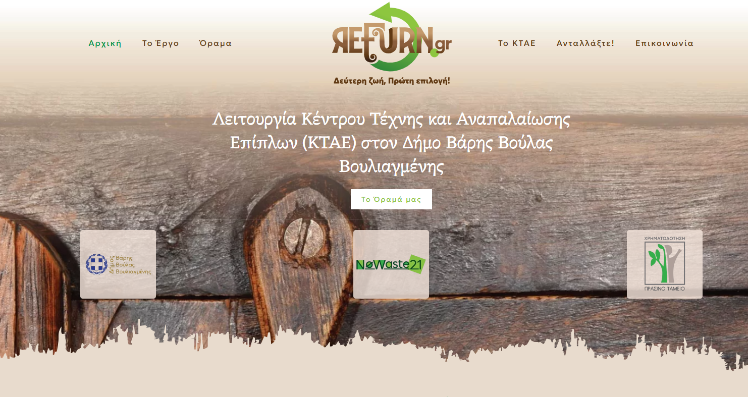 Το έργο με τίτλο «Λειτουργία Κέντρου Τέχνης & Αναπαλαίωσης Επίπλων (ΚΤΑΕ) στον Δήμο Βάρης Βούλας Βουλιαγμένης» αποτελεί μια καινοτόμα πρόταση επαναχρησιμοποίησης επίπλων και δημιουργίας έργων τέχνης, η οποία χρηματοδοτείται από το Πράσινο Ταμείο στο πλαίσιο της Πρόσκλησης «Καινοτόμες δράσεις με τους πολίτες» του χρηματοδοτικού προγράμματος «Φυσικό Περιβάλλον & Καινοτόμες Δράσεις 2023», όπου συμμετείχε λαμβάνοντας την 6η θέση μεταξύ 71 υποψηφιοτήτων.